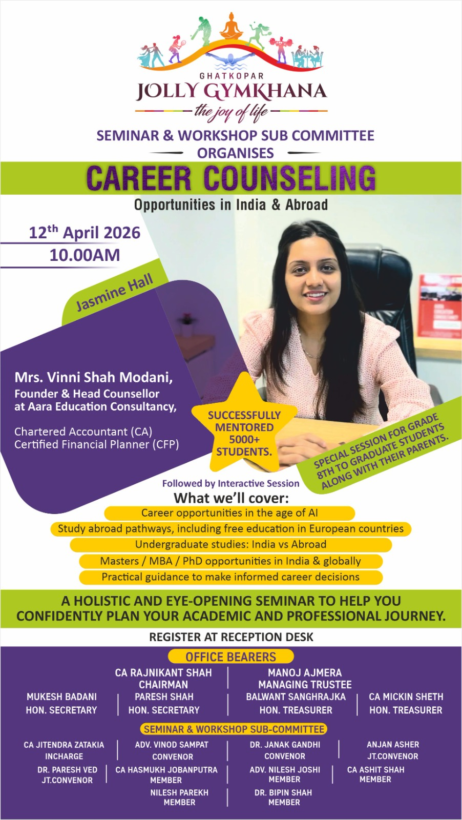 Established in 1950, Ghatkopar Jolly Gymkhana was founded by 60 founder members. It is one of the oldest and most prestigious Gymkhana in Mumbai situated in eastern Suburb of Mumbai.